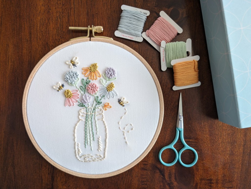 Do I recommend one of these kits from Clever Poppy for people who are interested in learning modern embroidery? Before I give you my answer, here are the caveats: (1) this is not a sponsored review in any way; I do not benefit from you purchasing from them in any way other than getting to potentially chat with you about our new hobby, (2) I did not try out kits from other brands, and (3) while I had never tried embroidery before, I would consider myself an experienced crafter (knitting, crochet, quilting) and did not encounter any challenges or difficulties. The few emails I have exchanged with the Clever Poppy team since I began learning embroidery have been answered quickly and effectively.